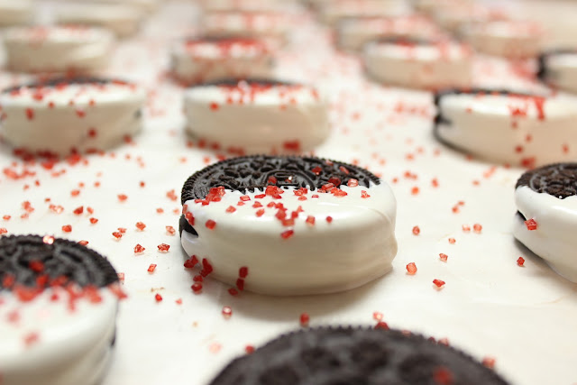 Chocolate covered anything is a delicious and simple way to enhance any holiday party. It’s easy, kid-friendly, inexpensive and fun to make. Shanie, my cooking partner here on the bog is also in charge of planning the holiday party at our office so I offered a hand in the candy making process. You can put melted chocolate on practically anything you want. We made chocolate covered Oreos, nuts, pretzels, and candy canes. Simply purchase semi-sweet baking chocolate, melt in a saucepan over another saucepan filled with water and dip away!