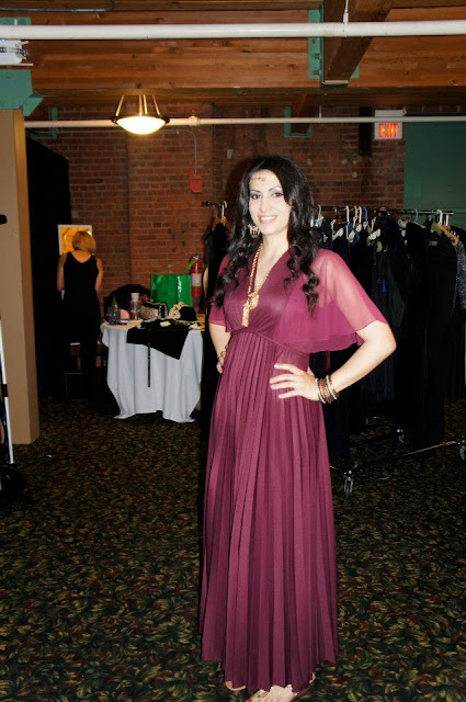 I kept the hair and makeup simple with loose waves, natural face with a bright lip, and headpieces in a few looks. My models did their own makeup and a personal friend, mother of one of my models, Bridgette (in the gold skirt), the amazing April accompanied us backstage and did all of the hair styling, while my awesome sister, Nora helped with the headscarves and hairpieces. April is a hair stylist at Damino’s in Fairlawn.