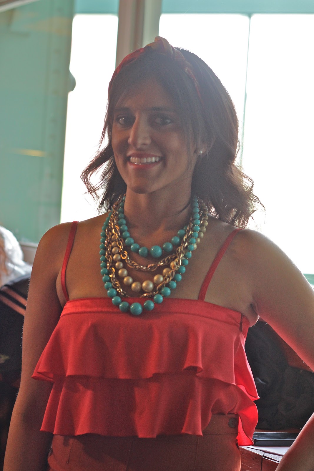 | {Bridgette wore a vintage gold pleated maxi skirt with an Ann Taylor one shoulder top and a mix of vintage, traditional and modern accessories} |