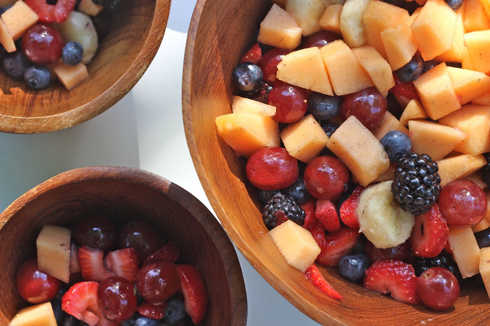 You can use any type of fruit you want. I recommend berries because you don’t have to cut them and they are in season right now. I also recommend some type of melon for a juicy flavor and adding the bananas before serving. I used: