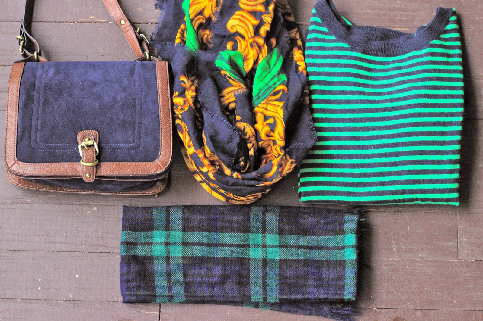 Pantone may have declared marsala color of the year, but over here on Dina’s Days navy wins the prize. My attraction to everything navy, green, and tan lately has caused me to put a few of my thrifted purchases on heavy rotation.