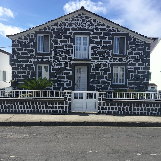 Mosteiros. A beautiful beach with black sand alongside a charming town.